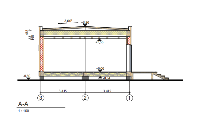 | Kąt nachylenia dachu: | 3-5° |